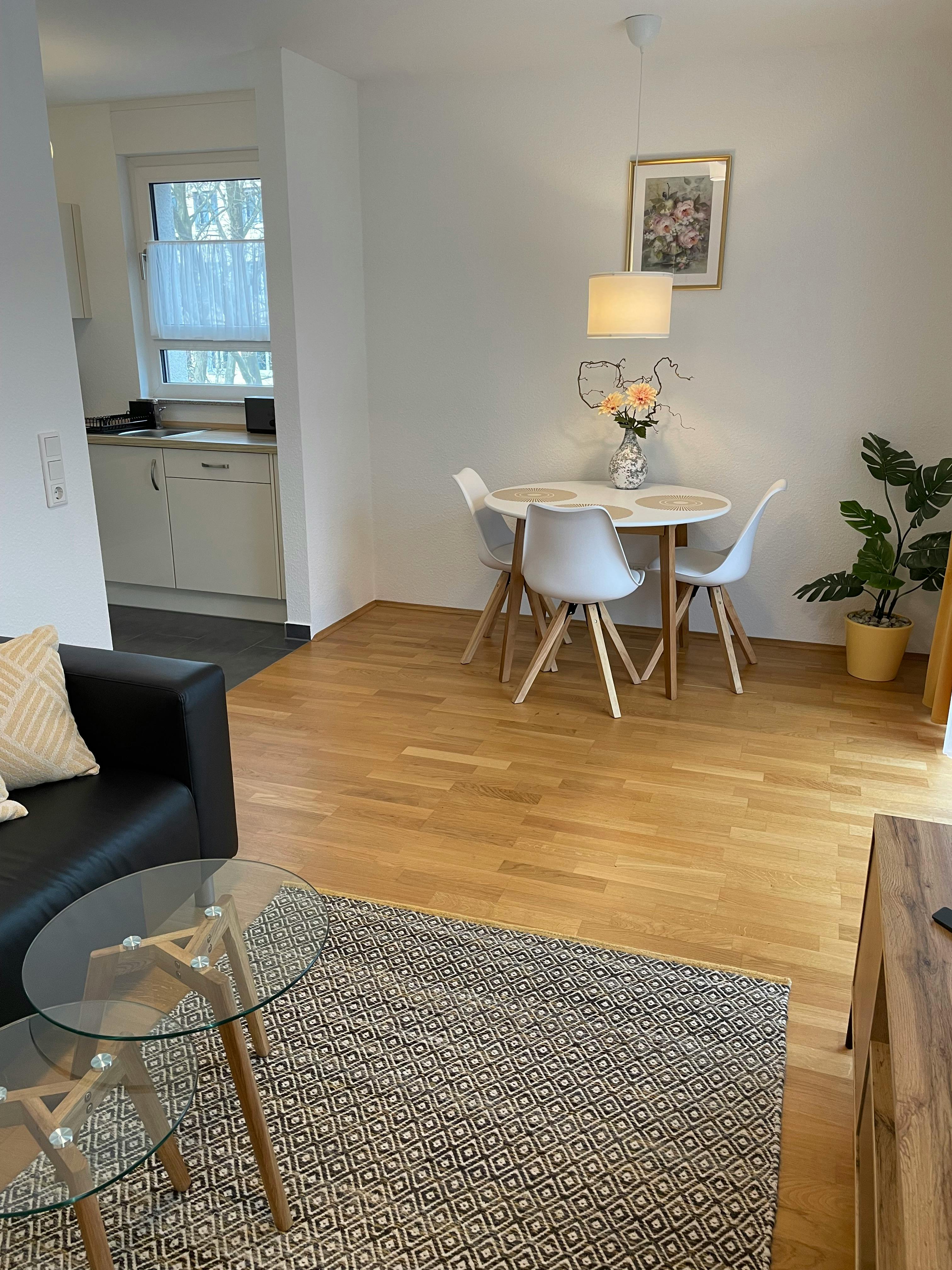 Gesamte Wohnung: Erstbezug: Schicke möblierte 2-Zimmer Wohnung mit Balkon, Internet und Waschmaschine in zentraler Lage in einem Mehrfamilienhaus in Wiesbaden Südost. Der Wiesbadener Hauptbahnhof liegt im unmittelbaren Umkreis und die öffentlichen Verkehrsmittel sowie Geschäfte des täglichen Bedarfs befinden sich in fußläufiger Nähe. Die Lage bietet eine schnelle Anbindung zur Autobahn A66 und A671. Das Wohn- und Esszimmer ist mit einem Sofa, einem Esstisch, einem Schreibtisch und einem Sideboard mit Flatscreen-TV eingerichtet. Aus dem Wohnraum heraus gelangen Sie auf den Balkon mit Sitzgelegenheit und Blick in das Wohnviertel. Im angrenzenden Schlafzimmer befinden sich ein Französisches Bett (140 x 200 cm) und ein großer Kleiderschrank. Die moderne Einbauküche mit...